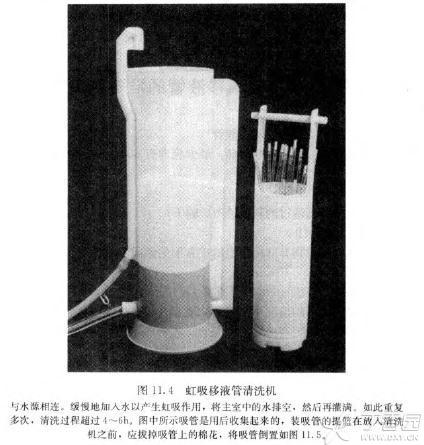 6. 用自來水通過清洗器的虹吸作用清洗移液管,**少 4 h,也可用帶有移液接頭的自動清洗機(jī)來清洗,但不要加清潔劑。