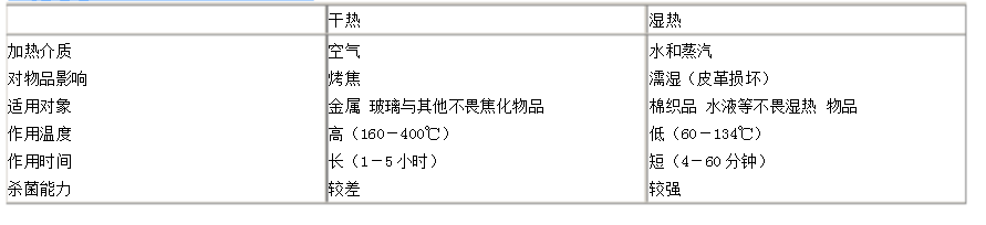 濕熱與干熱各有特點,互相很難完全取代,但總的說來,濕熱的消毒效果較干熱好,所以使用也普遍。濕熱較干熱消毒效果好的原因有三;①蛋白質在含水多時易變性,含水量多,愈易凝固;②濕熱穿透力強,傳導快。③蒸汽具有潛熱,當蒸汽與被滅菌的物品接觸時,可凝結成水而放出潛熱,使濕度迅速升高,加強滅菌效果。