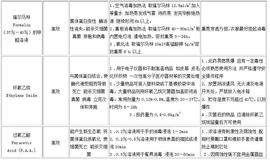 此外,尚可應用甲醛或過氧乙酸等進行熏蒸滅菌(詳見表5-2)。