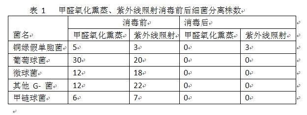 4.3紫外線照射消毒法 在各醫(yī)院較廣泛地應(yīng)用其殺菌原理是紫外線光使微生物的 DNA 產(chǎn)生誘變和致死。但紫外線照射強(qiáng)度及消毒效果受多種因素影響 ,從表 1 兩種消毒效果比較可知甲醛氧化熏蒸消毒優(yōu)于紫外線照射消毒法。甲醛氧化熏蒸消毒效果顯著 ,取材方便、制作簡(jiǎn)單 ,置入箱內(nèi)消毒不受其他條件影響。此方法在基層醫(yī)院更具有實(shí)用性。